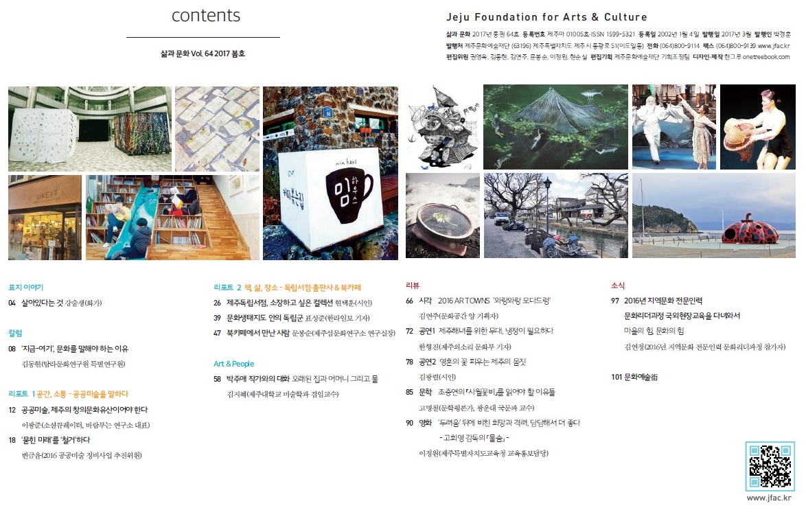 * 제주문화예술재단 기관지 삶과문화는 도내 도서관 및 예술공간 이아에서 볼 수 있습니다 :) *