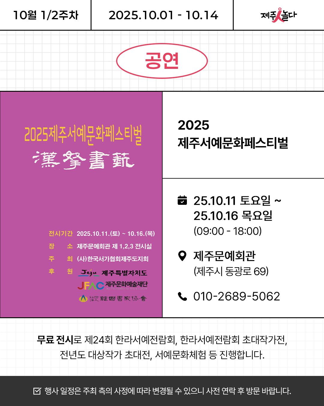 [카드뉴스] 2025년 10월 첫째/둘째 주 문화예술 행사소식