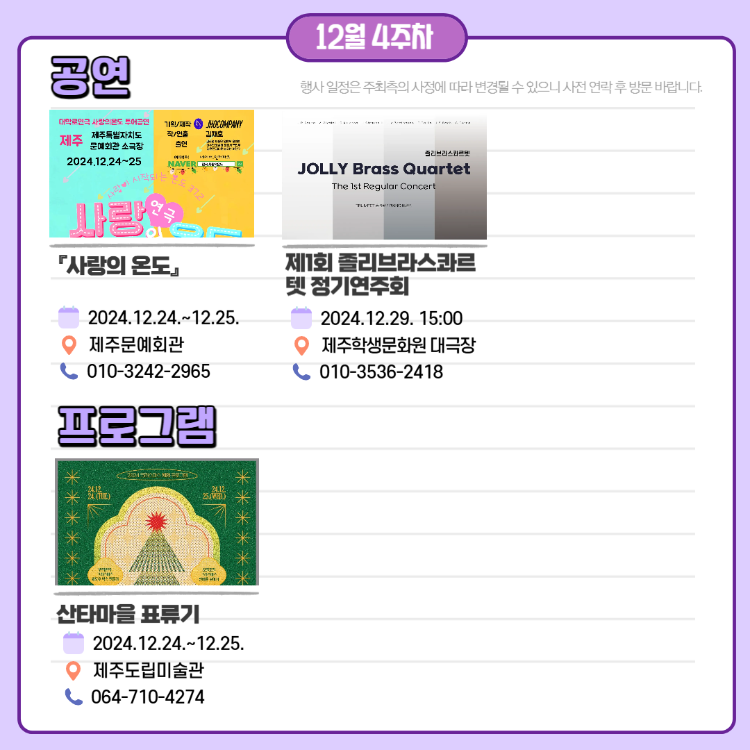 [카드뉴스] 12월 넷째 주 문화예술 행사 소식 😊