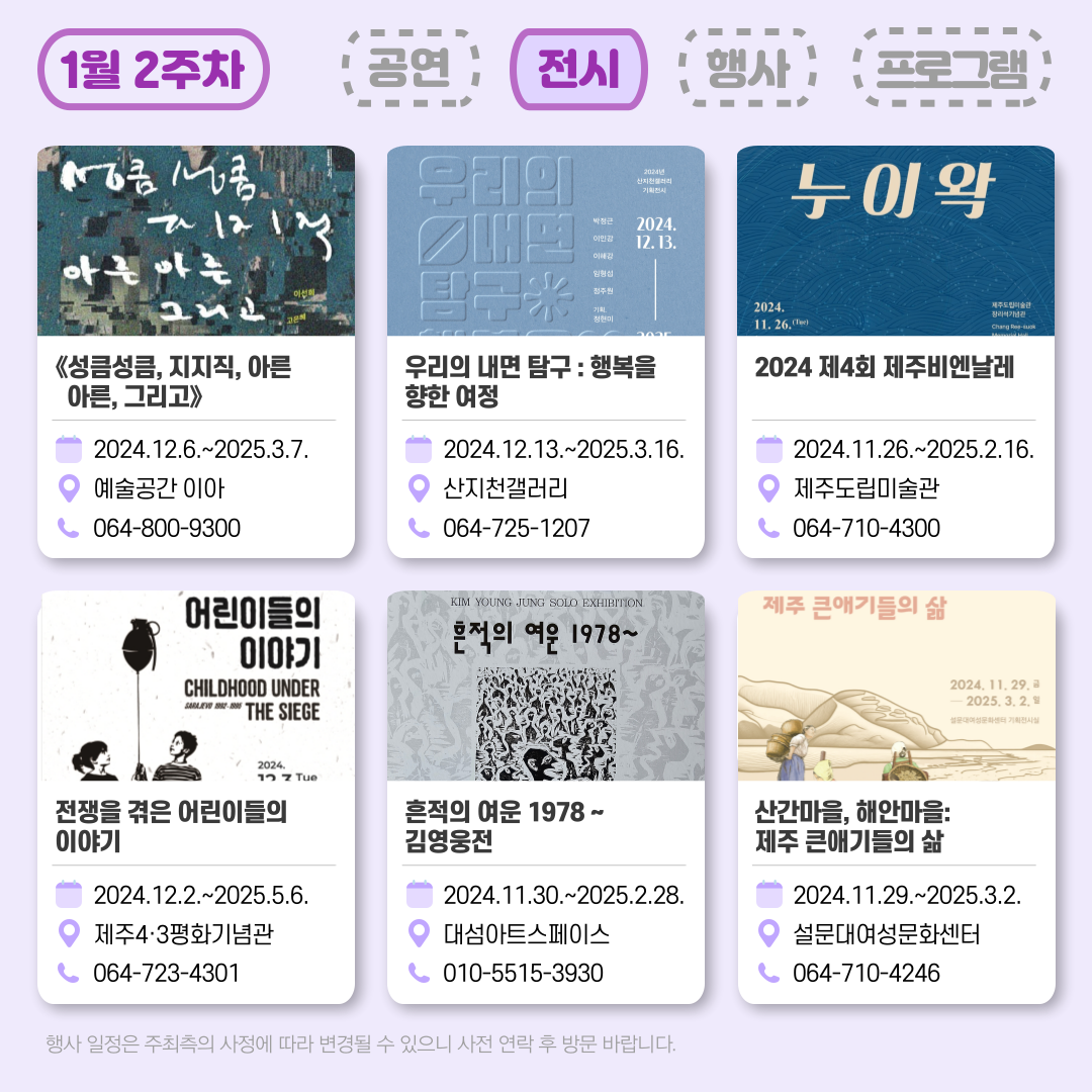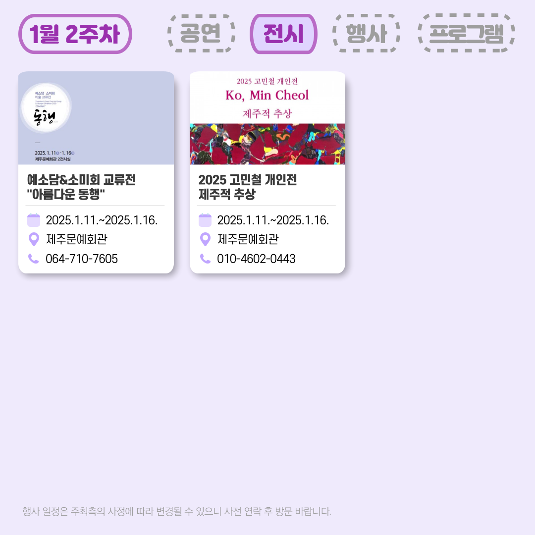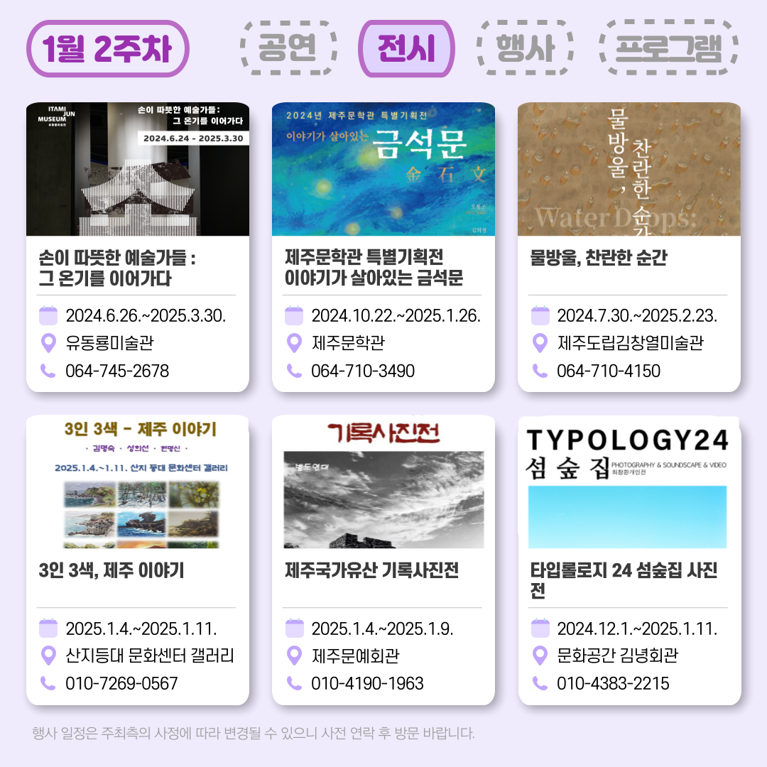[카드뉴스] 2025년 1월 둘째 주 문화예술 행사 소식