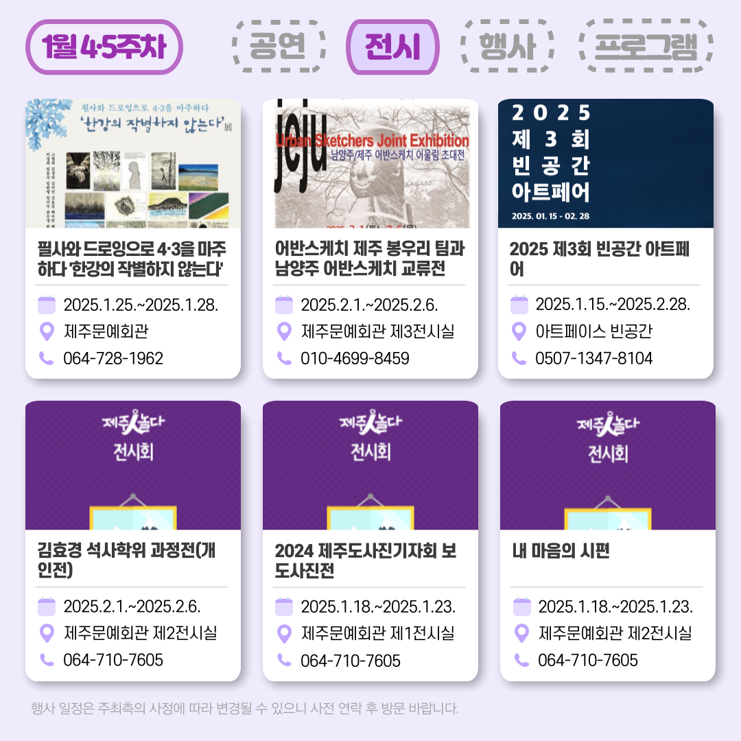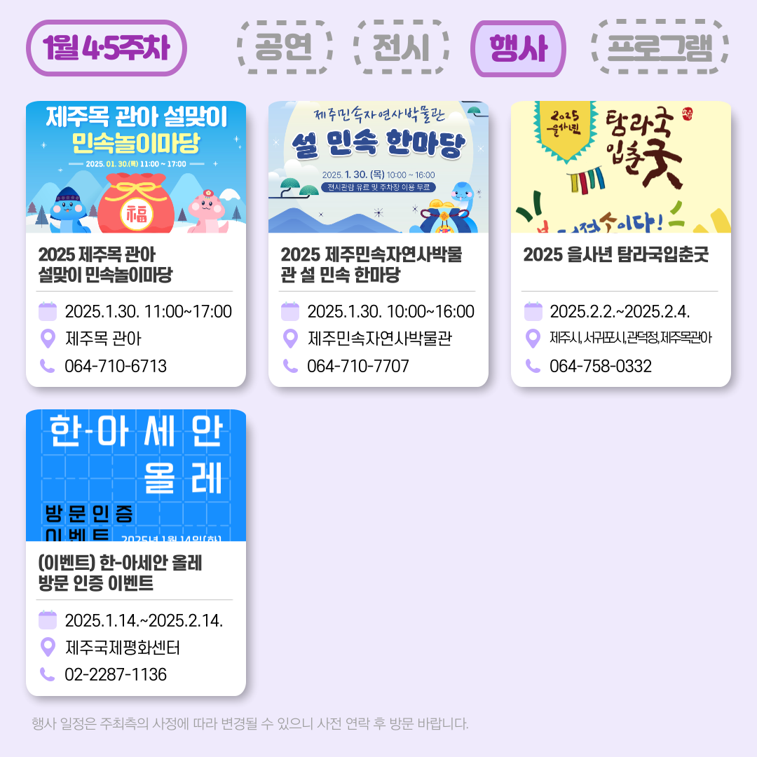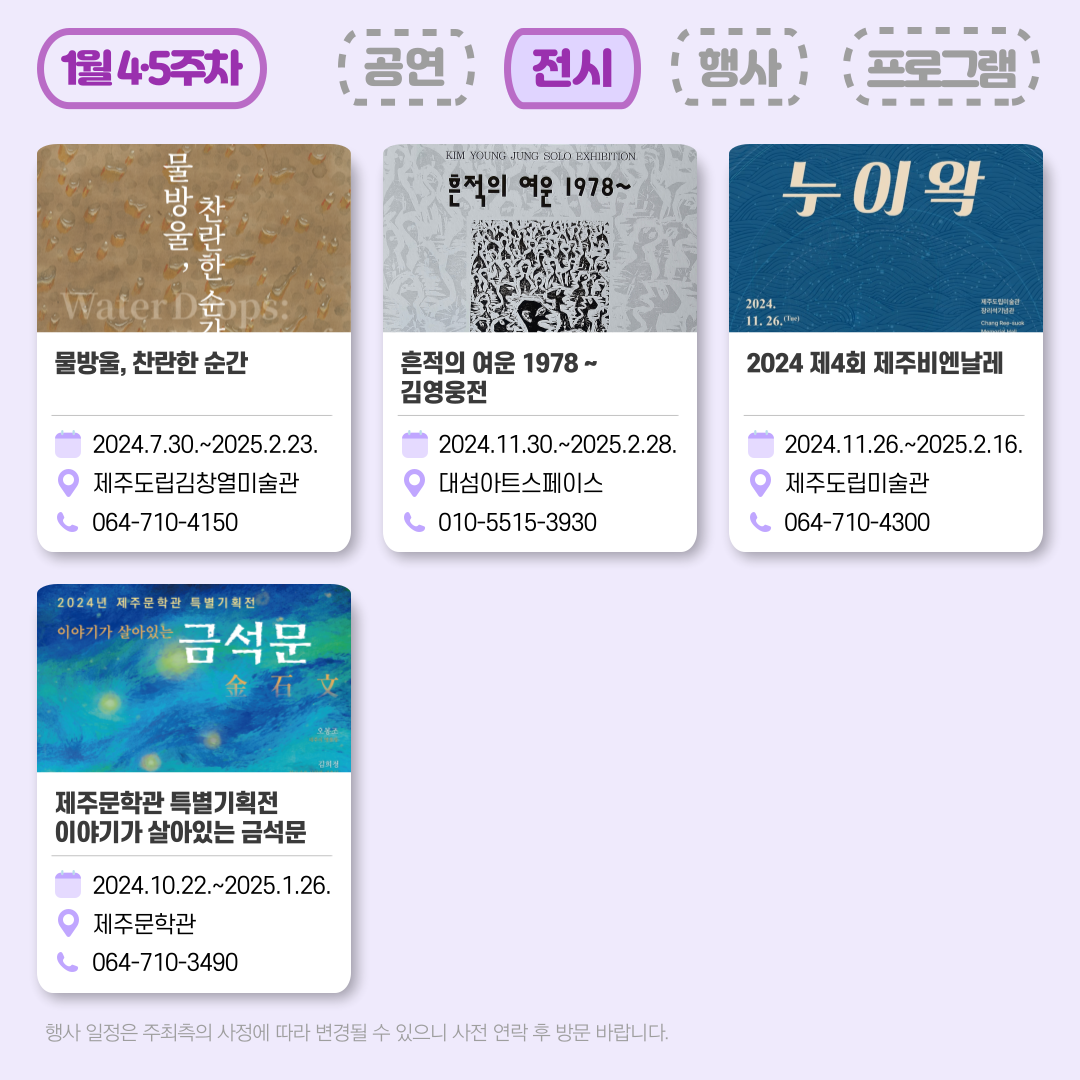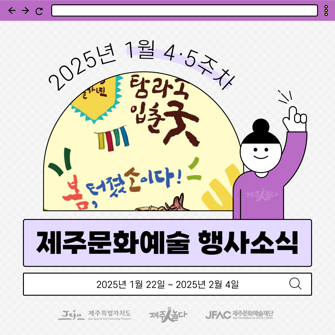 ※ 다음주는 설 연휴로 '제주문화예술 행사소식'은 한 주 쉬어갑니다.