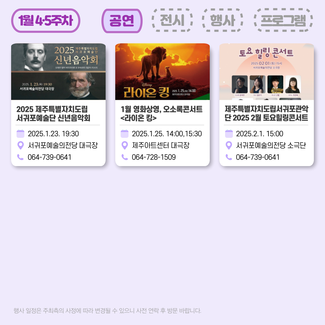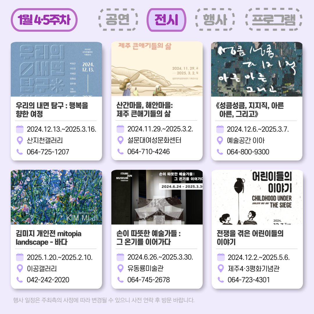 [카드뉴스] 2025년 1월 넷째 주, 다섯째 주 문화예술 행사소식