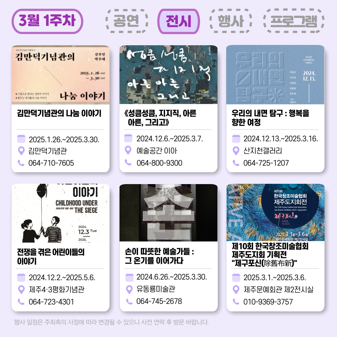 [카드뉴스] 2025년 3월 첫째 주 문화예술 행사소식
