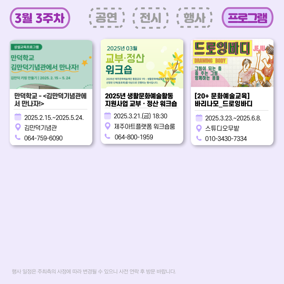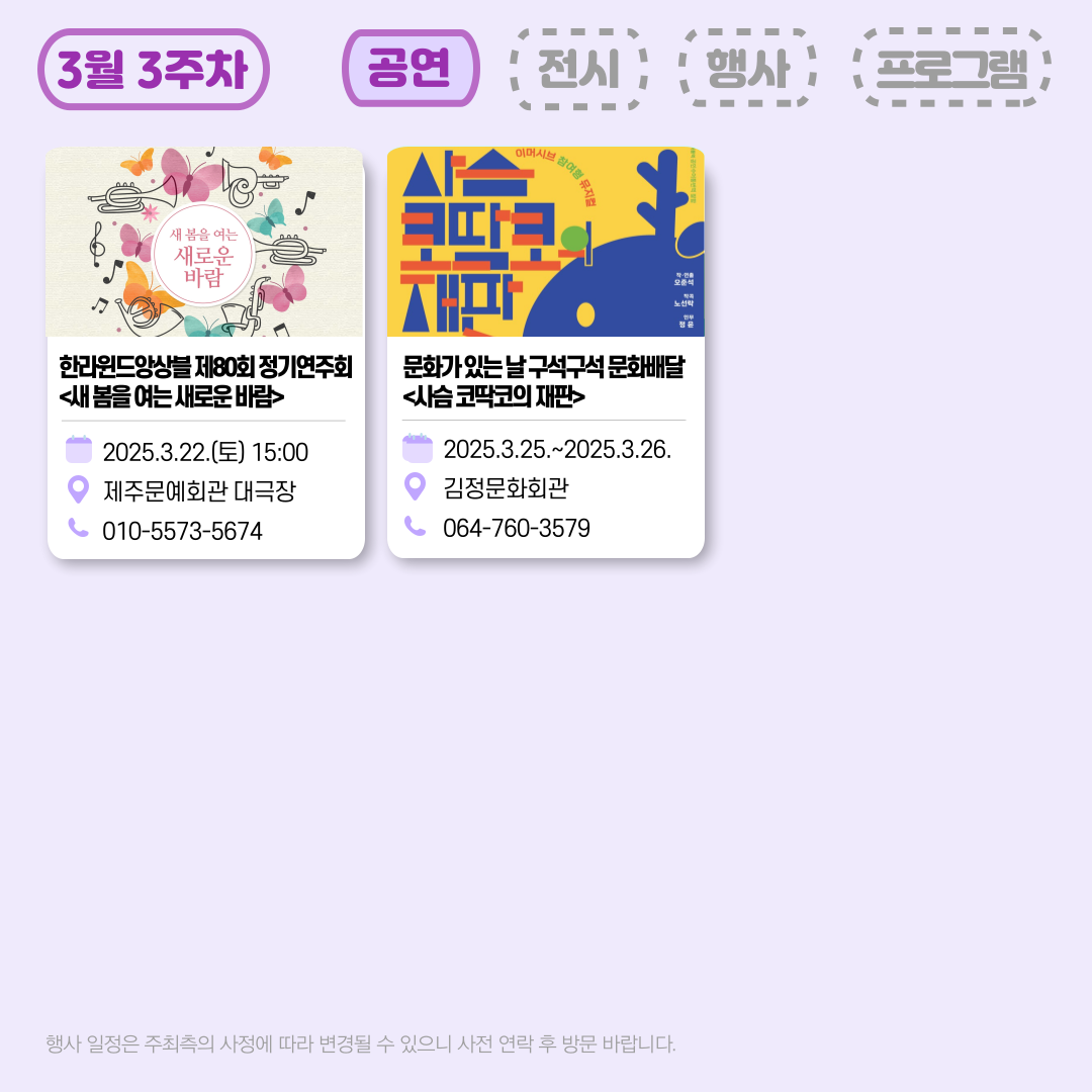 [카드뉴스] 2025년 3월 셋째 주 문화예술 행사소식