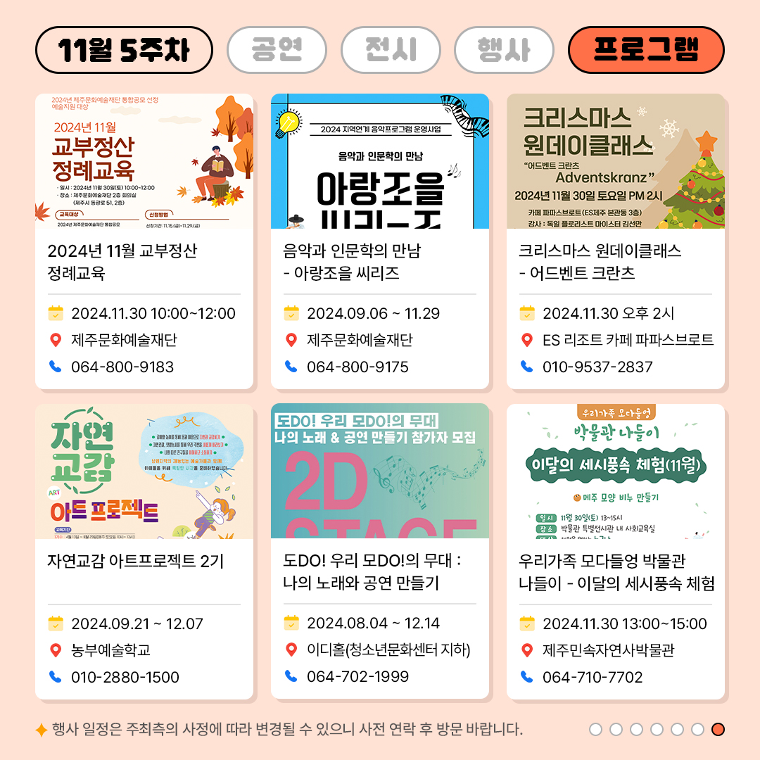 [카드뉴스] 11월 다섯째 주 문화예술 행사 소식 😊