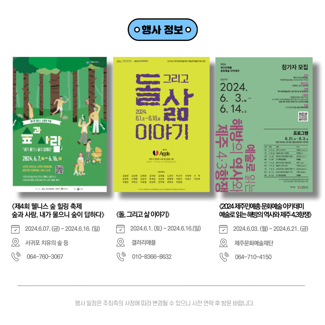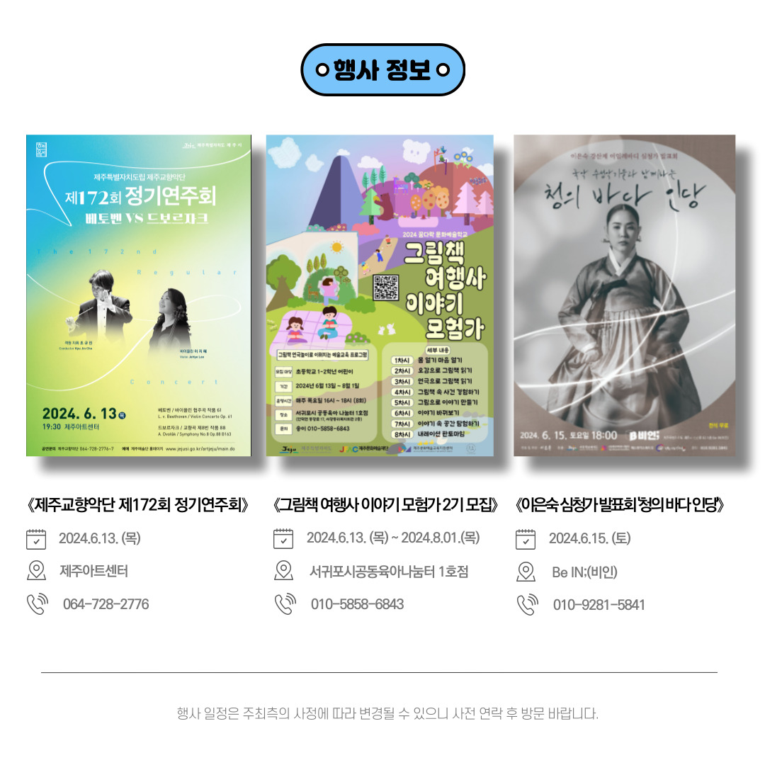 제주도에서 진행되는 문화 예술 소식을