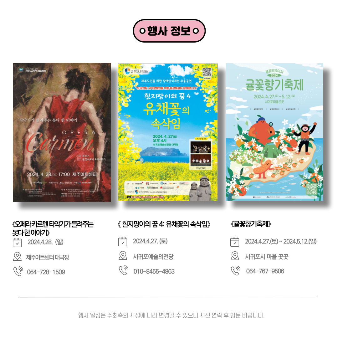 제주도에서 진행되는 문화 예술 소식을 #제주인놀다 에서 한눈에 볼 수 있습니다!