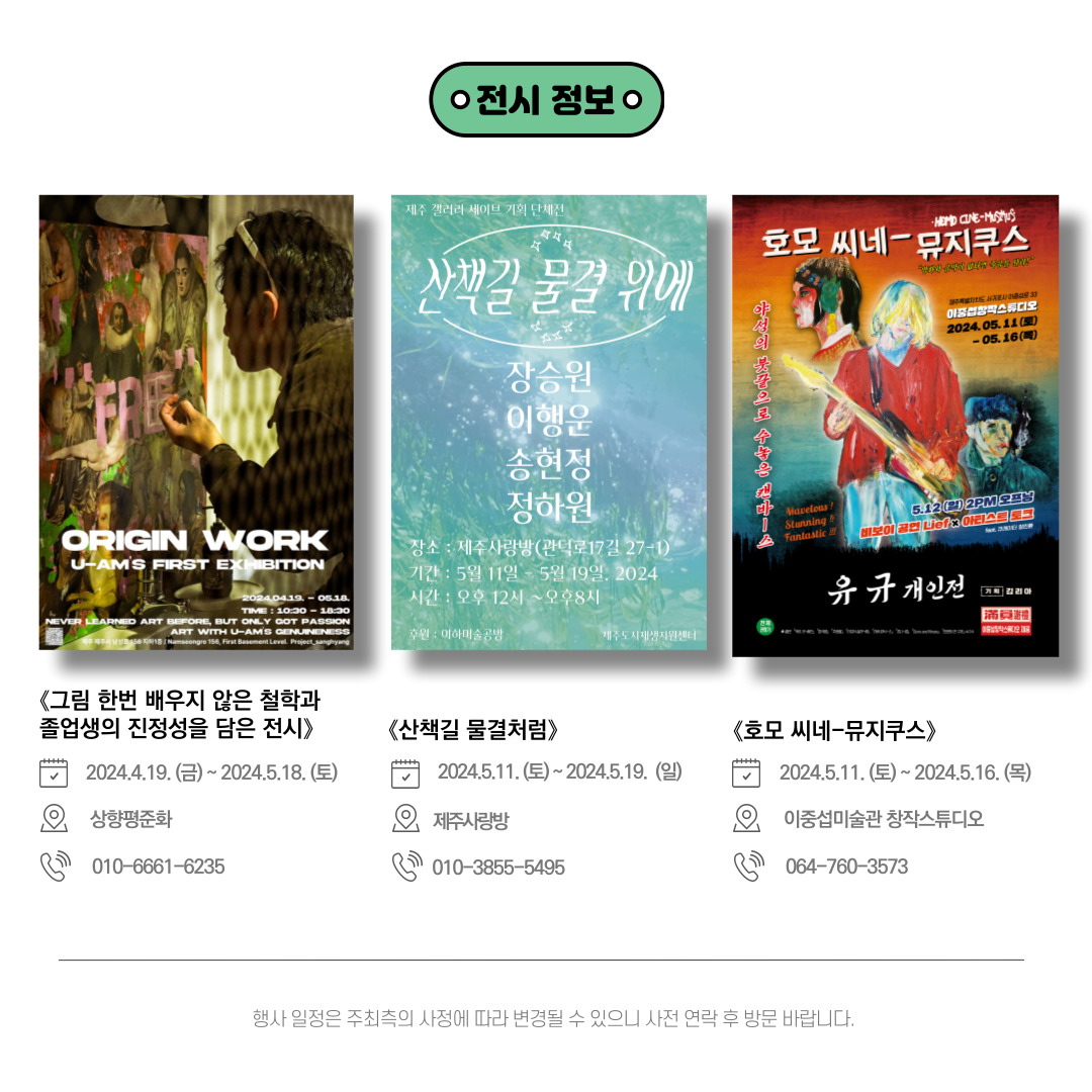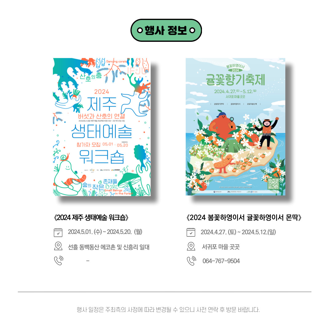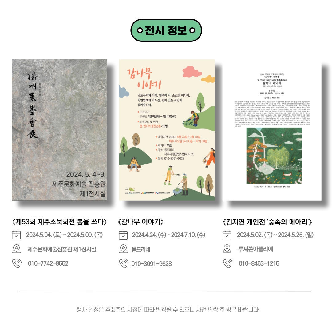 제주도에서 진행되는 문화 예술 소식을