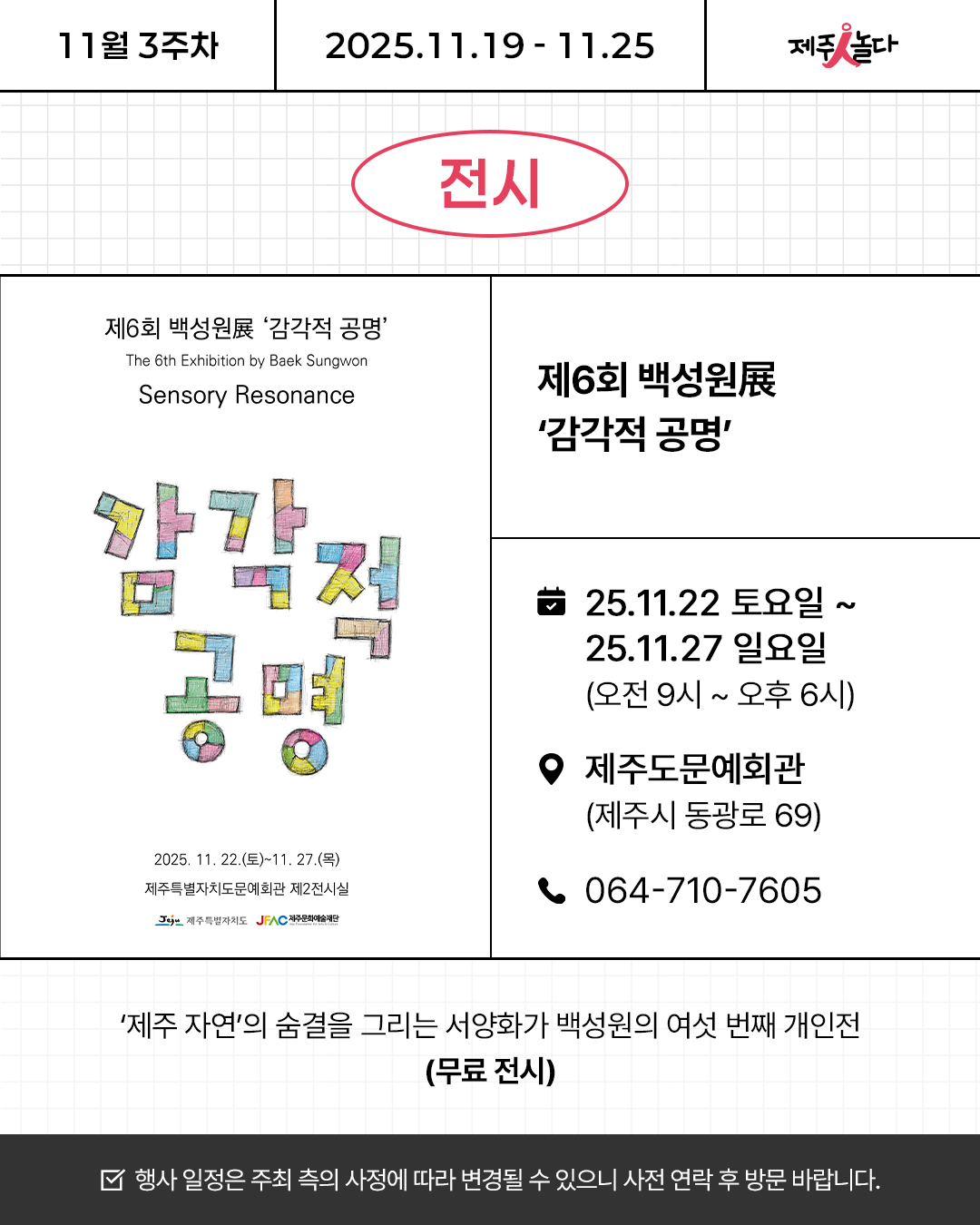 [카드뉴스] 2025년 11월 셋째 주 문화예술 행사소식