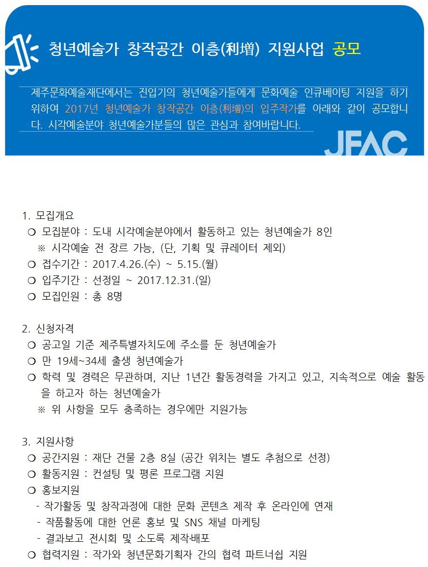 청년예술가 창작공간 이층 지원사업 공모(~5.15.)