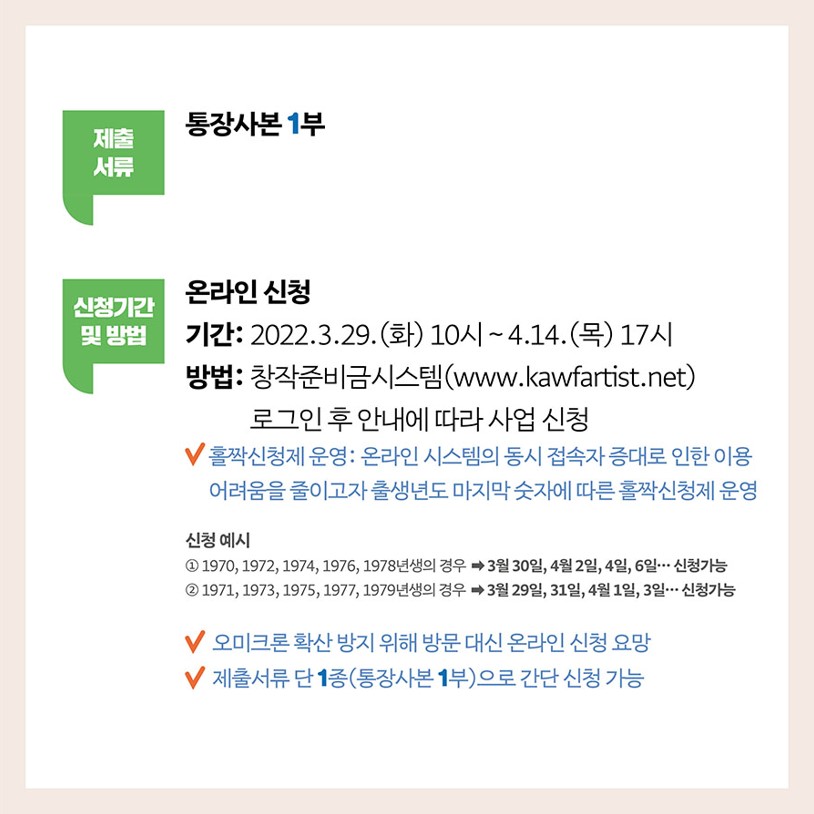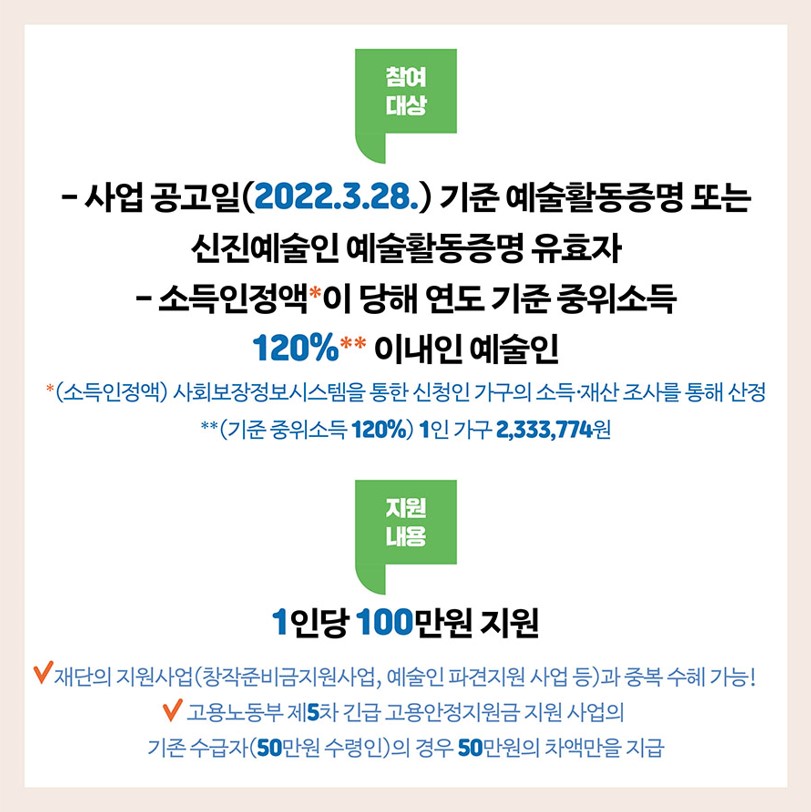 [한국예술인복지재단] 2022년 『코로나19 한시 문화예술인 활동지원금』사업 공고