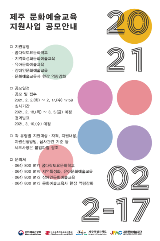 2021 제주문화예술교육 지원사업 통합 공모안내