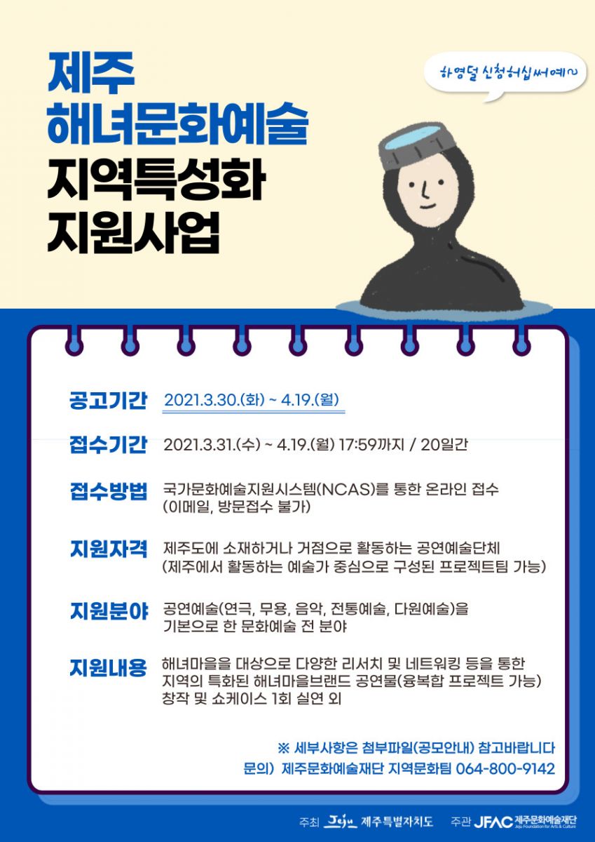 2021년 제주 해녀문화예술 지역특성화 지원사업 공모안내