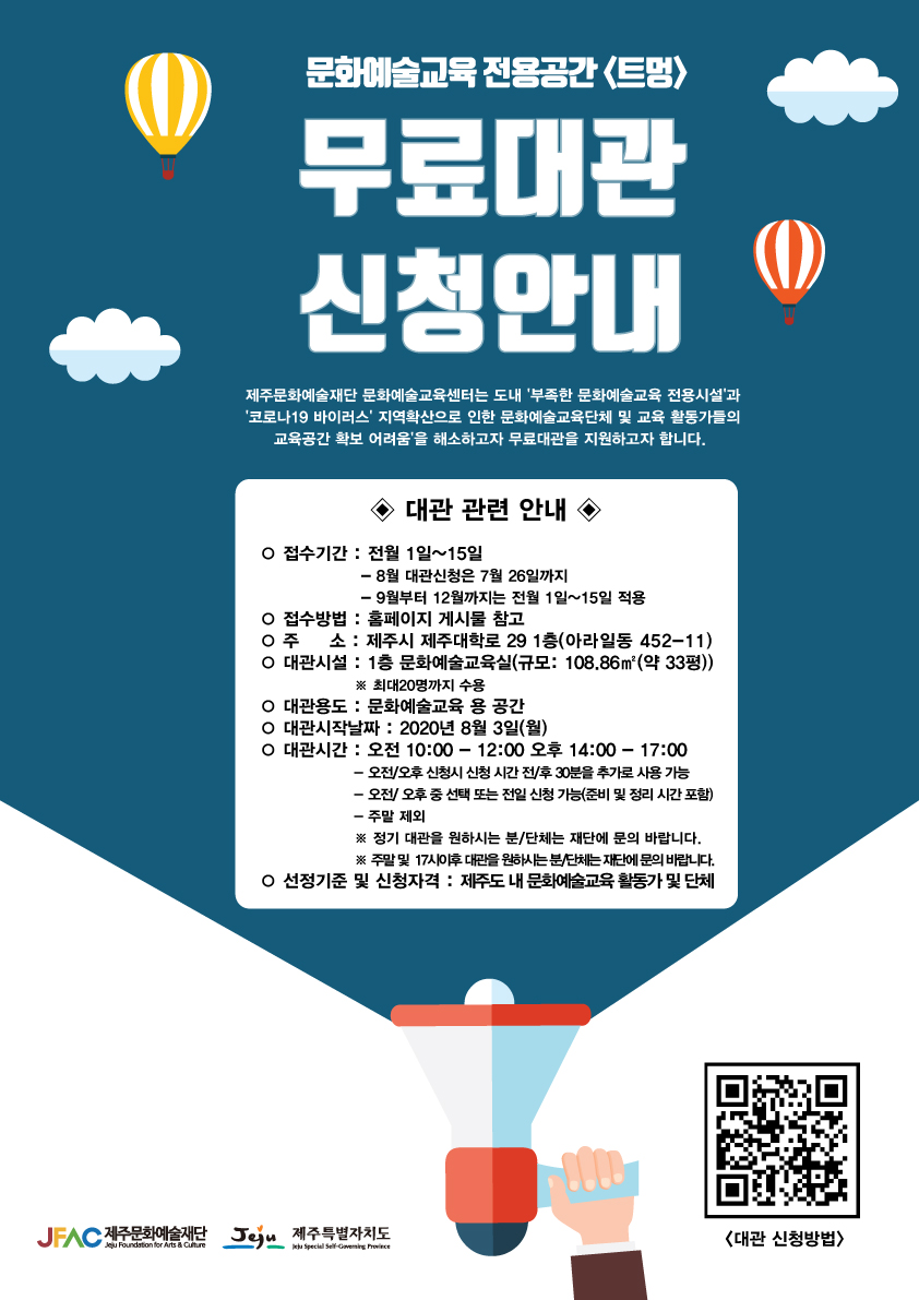문화예술교육단체 및 교육 활동가들의 교육공간 확보 어려움'을 해소하고자 무료대관을 지원하고자 합니다.