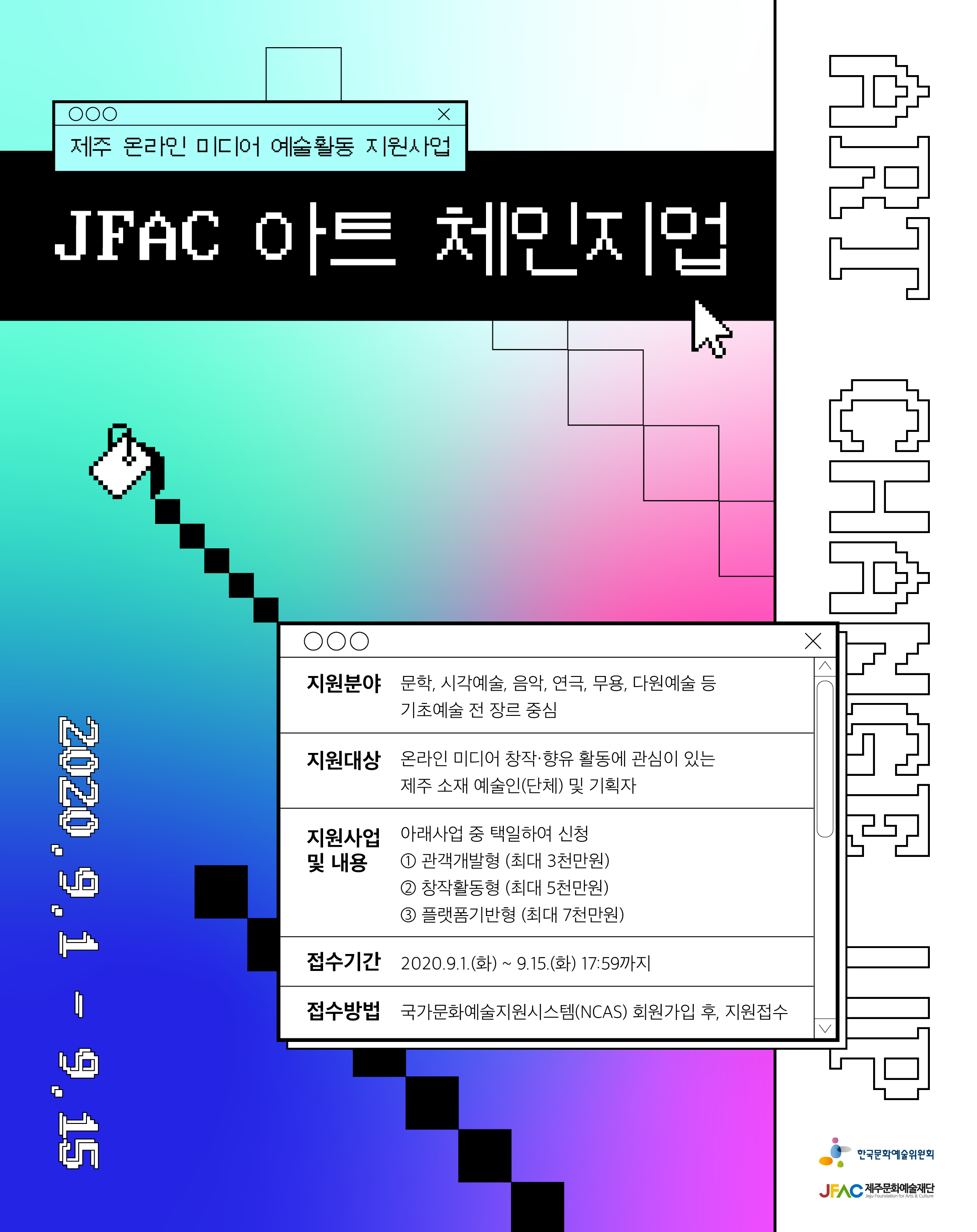 제주 온라인 미디어 예술활동 지원 JFAC 아트 체인지업 공모 안내