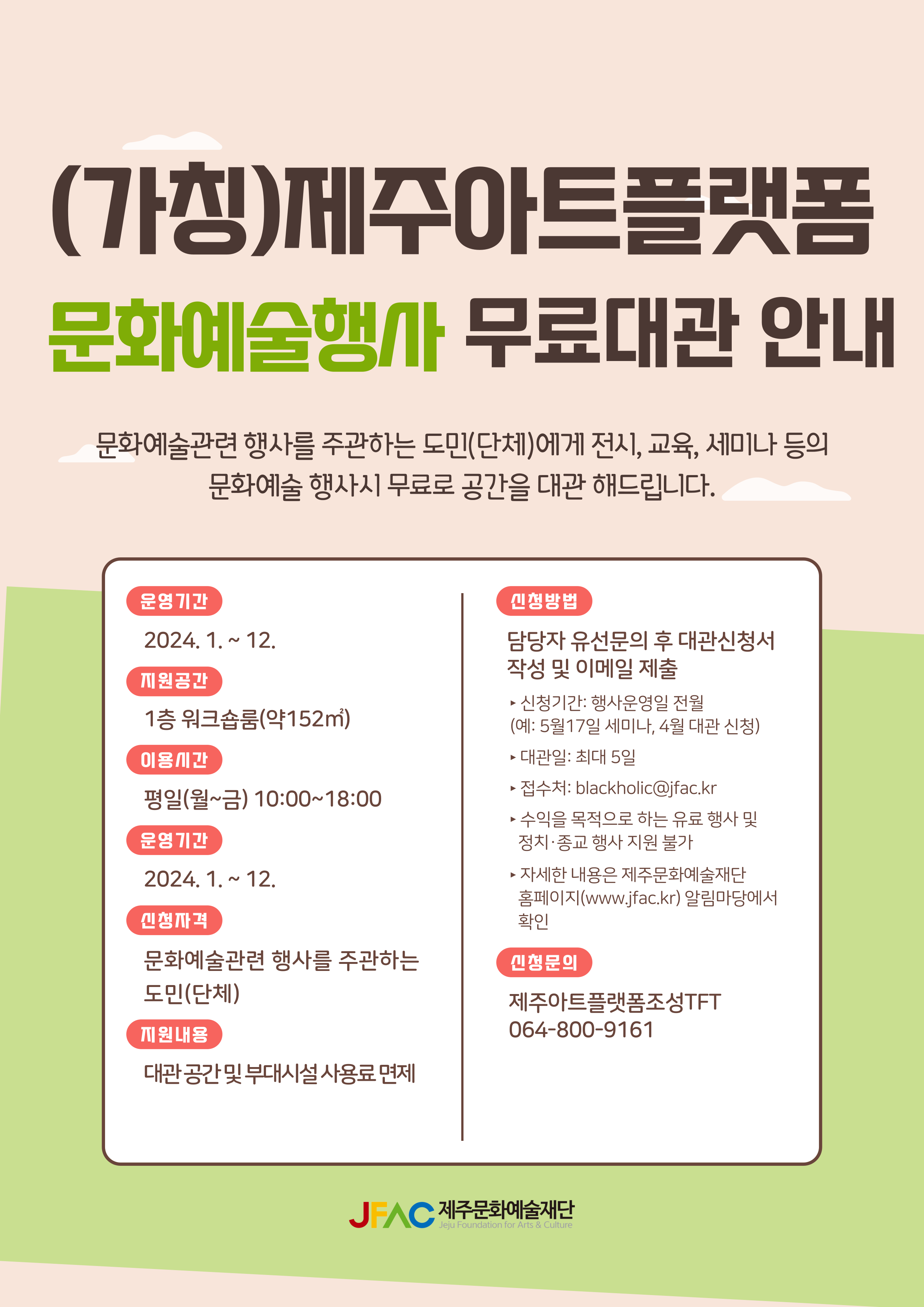 (가칭)제주아트플랫폼 문화예술행사 무료대관 안내